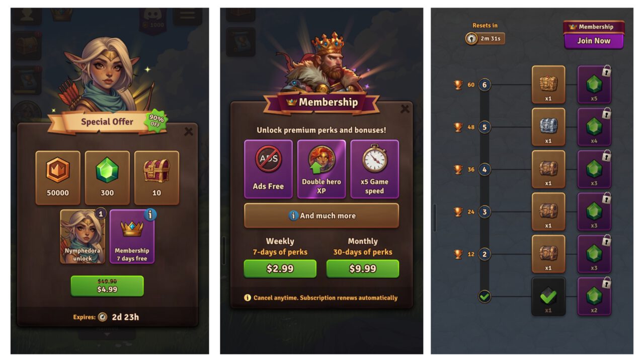 Az egész játékmenet teljes mértékig automatizált és meglepően hű az eredeti szerepjáték szabályokhoz, akinek van egy minimális tudása ezen a területen sokkal hamarabb át fogja látni, hogy miket érdemes megvenni, miket érdemes fejleszteni, de sajnos ugyancsak előjön majd a random generátor illetve annak a súlyos problémája hogy nem tehetünk semmit a fizetős ügyfelekkel szemben. Szerencsére ugye a legtöbb ilyen játékos feljebb lesz a ranglétrán, szóval lejjebb csak ritkán futunk majd ilyenekbe, de amikor egy aréna utolsó körében jön szembe egy ilyen az nagyon kellemetlen tud lenni. Egyébként összesen három életünk jut egy meccsre, tehát ha elveszítünk egyet még mindig marad kettő plusz illetve természetesen reklámok nézegetésével újabb életeket kaphatunk, hogy ne vesszen el minden amit eddig elértünk. Jómagam nem tartottam fontosan a ligákon belüli előrehaladást, sokkal fontosabb volt a győzelem és hogy azokat a dolgokat fejleszthessem amiket megszerettem illetve hasznosnak tartottam.