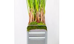 Minden egyes darab elkészítése 3 napba tellett. Miután kiszedi az elektronikát, egy automata öntözőrendszerrel szereli fel őket. A végeredmény: így a kompozíció tovább gyarapszik a kreatív ügynökségnél, ahol Guinet dolgozik.
