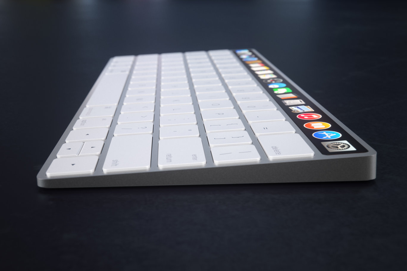 Hetek óta érkeznek a pletykák az év második felére várt Macbook kapcsán, amibe a funkcióbillentyűk helyére várhatóan OLED érintősort integrál az Apple. Nagyon sok találgatás volt arra, hogy hogyan is fogják megvalósítani mindezt, ám a múlt héten megjelent koncepcióval valószínűleg mindenki megelégedne. Az alábbi képek pontosan ezt a vonalat követik és az eltávolított felső gombsort helyettesítik egy OLED érintősorral. A különféle alkalmazások kezelőfelülete mellett, akár a komplett macOS dokk is elérhetővé válhatna a billentyűzeten.