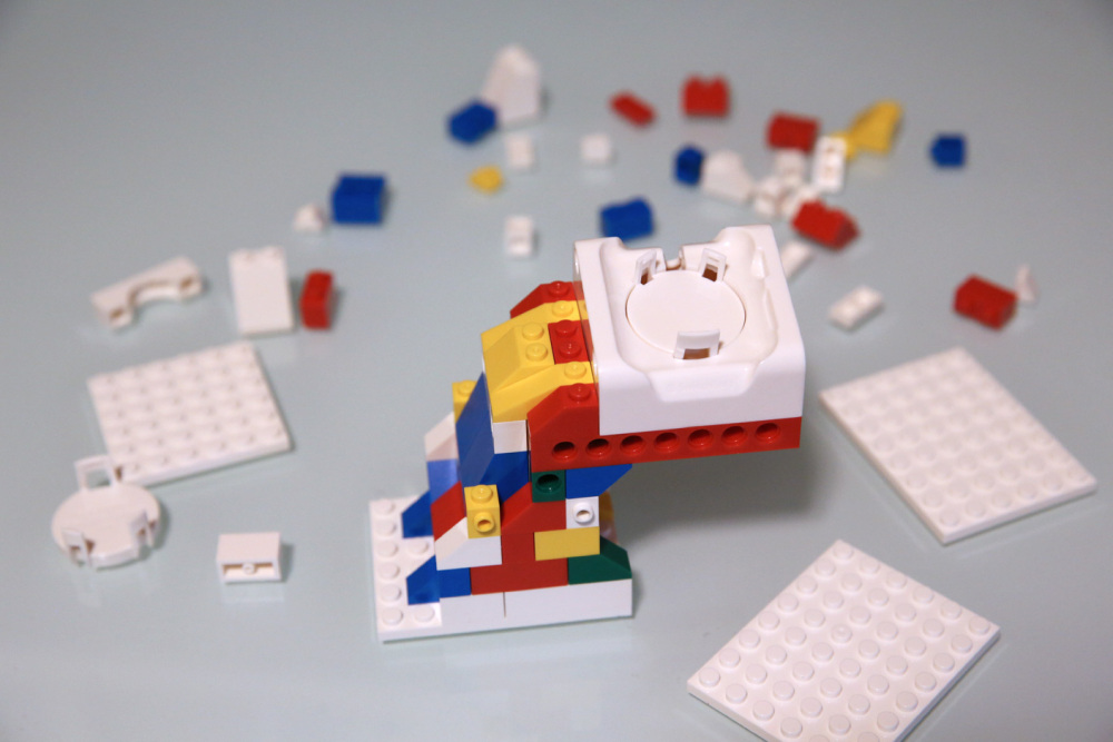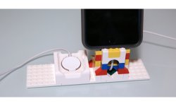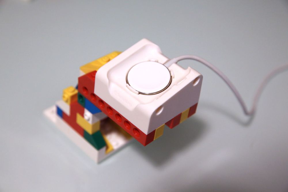 A „játékszer” majdnem előállítható lenne az otthoni Lego készletből is, de sajnos azért vannak olyan elemek benne, amik elengedhetetlenek ahhoz, hogy egy valóban jól működő, stabil töltő-állomás készüljön a csöppet sem olcsó Almás okosórához.