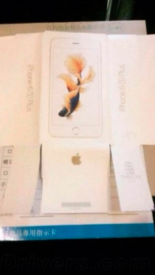 A cnBeta által kiszivárogtatott képen jól látszik a 6s Plus csomagolása, ami normál méretű, fehér doboz az alapja hasonlóan a korábbi telefonoknál használtakhoz.