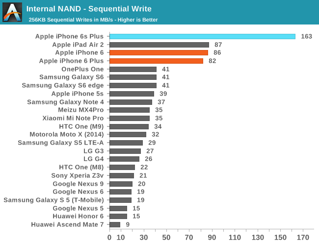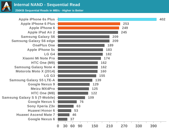 Az egyik fő ok amiért ekkorát nőtt az iPhone teljesítménye az SSD-re írásban keresendő. Ebben a készülékben az SSD vezérlője nagyban hasonlít a MacBook-okéra, akármennyire is furcsán hangozhat ez. Természetesen ez egyedülállónak számít a mobilok világában. A NAND teljesítmény egészen kivaló, főleg ha sorozatos kéréseket kell teljesítenie a telefonnak - tudhatjuk meg az AnandTech egyik agytrösztjétől, Joshue Ho-tól.