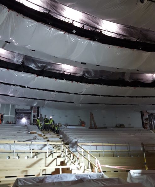 A még júniusban készült fotók - amiket mostanáig valamilyen úton-módon még senki sem fedezett fel a Google adatbázisában - bemutatják az 1000 férőhelyes csarnok végső simításait. Úgy néz ki, rengeteg fát használnak fel a auditórium alsó szintjén, ami éles kontrasztban áll a fönti csupasz üvegfalakkal.