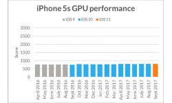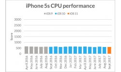 Ha vetünk egy pillantást a felmérés eredményére, akkor láthatjuk, hogy szinte semmiféle teljesítménybeli csökkenés sem lép fel az iPhone-ok működése során, még az új modellek megjelenése után sem. Az iPhone 5S például pont ugyanolyan jól teljesített 2016-ban, az iOS 9 futtatása során, mint idén (az iOS 11 alatt). Az eredmény szinte teljesen ugyanez a 6, 6S és 7 esetében is.
