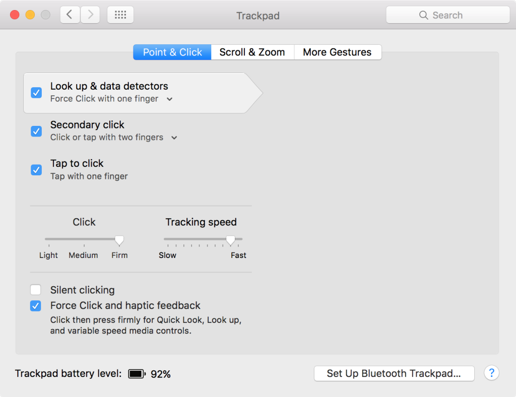 Természetesen a fő ficsör a Force Touch. A 2015-ös MacBook-ban debütáló technológia lehetővé teszi a kattintás/koppintás erősségének detektálását, így lehet különbüző funkciókat hozzárendelni ehhez OS és in-app szinten egyaránt. Például "forszklikkelve" egy szóra, rákereshetek a jelentésére, Force Click segítségével egy fájl előnézetét tekinthetem meg. Vagy mondjuk a QuickTime appban szabályozhatom a tekerés sebességét a nyomás erősségével stb., stb.