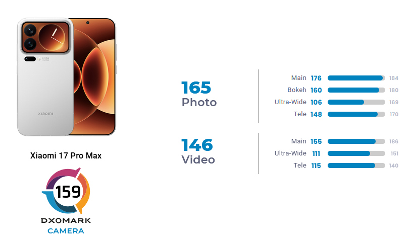 Ez pedig nem más, mint a Xiaomi által a közelmúltban piacra dobott felsőkategóriás 17 Pro Max, mely enyhén csalódást keltő módon csak 159 pontot ért el a minden részletre kiterjedő tesztekben, és ily módon a toplista tizenharmadik helyére került.